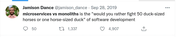 Whereas in the case of monoliths, there are generally large teams with multiple devs contributing to the same codebase but no one taking ownership of the entire build. Another issue of such a team structure is inefficient communication.